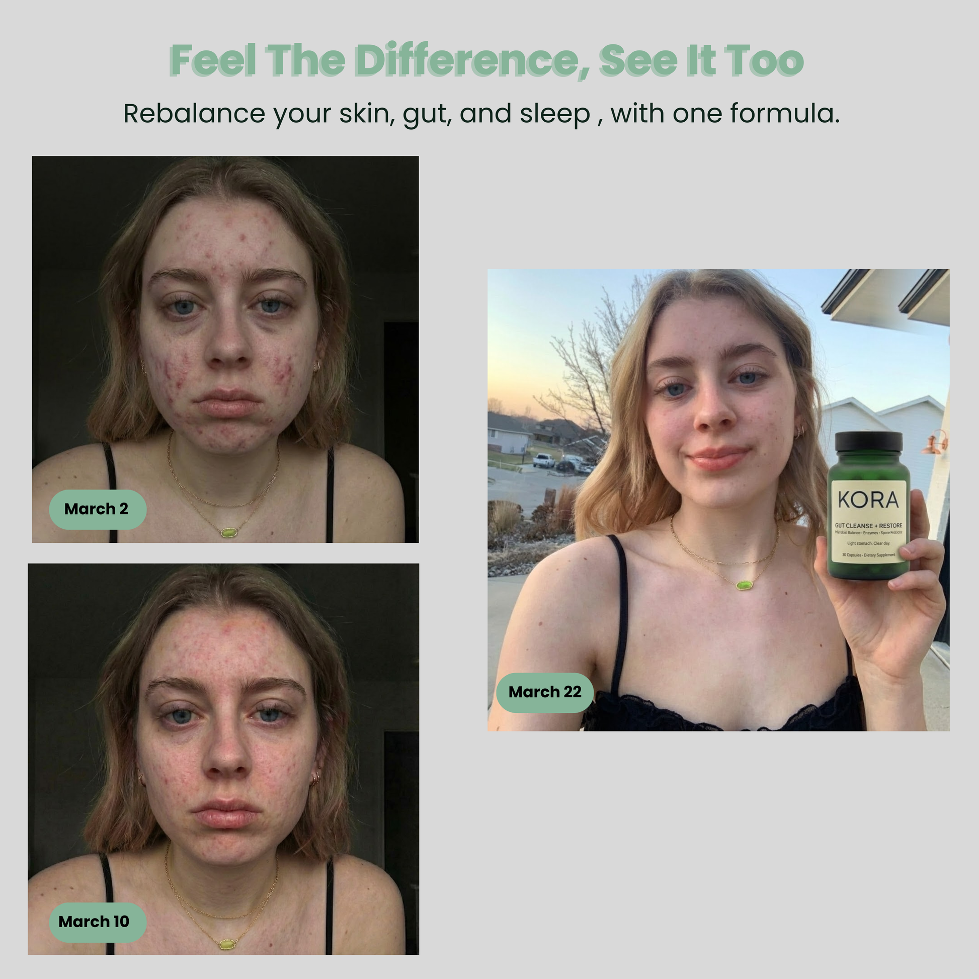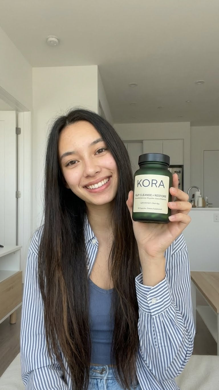 KORA Gut Cleanse + Restore delivers real results. One capsule daily restores your gut health, clears your skin, and improves your sleep. Premium ingredients. No fillers. Noticeable results within 30 days.